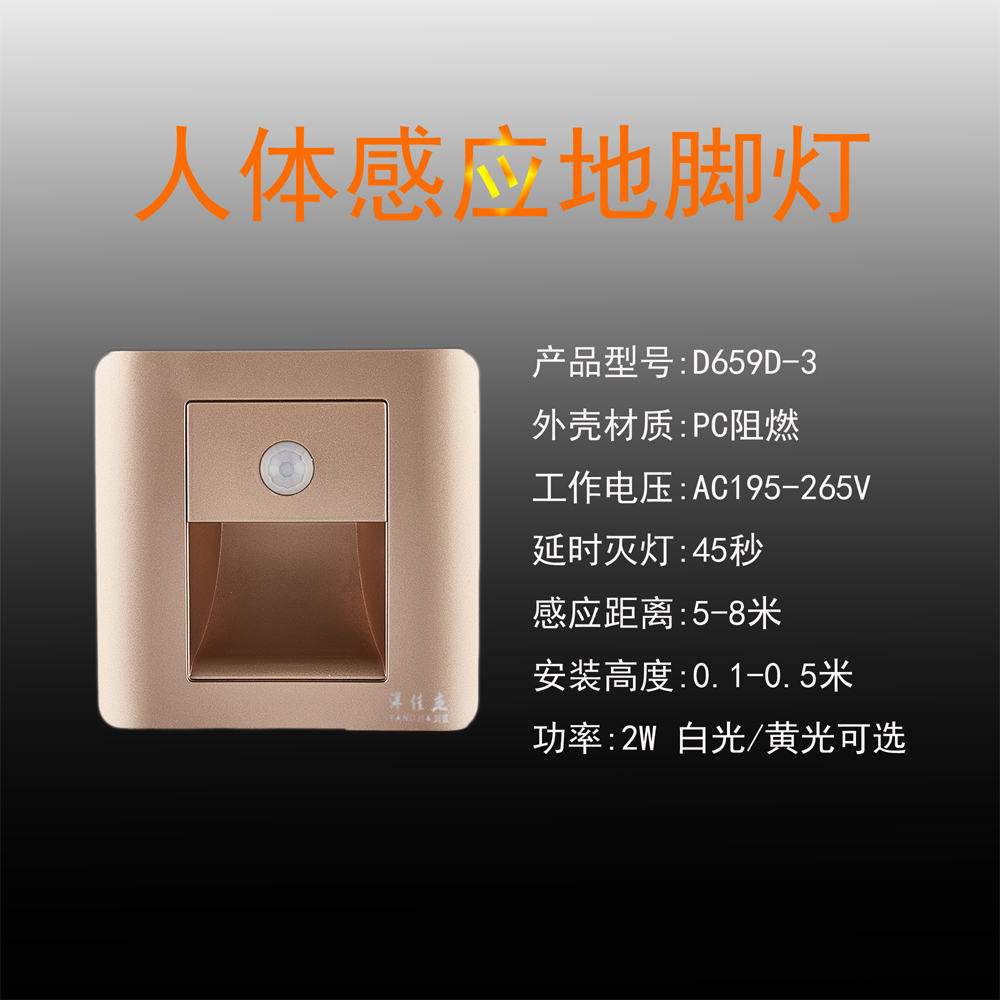 洋佳杰   2W人體感應地腳燈(白/黃光)--金/白色
